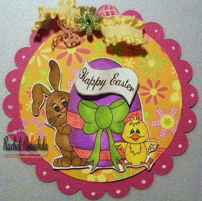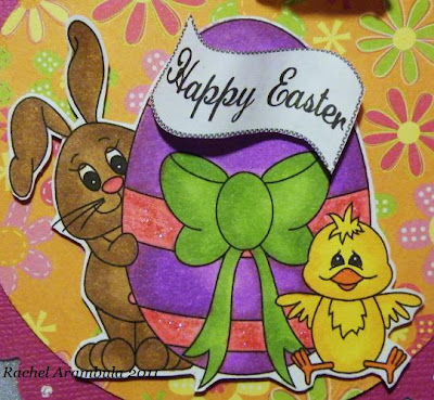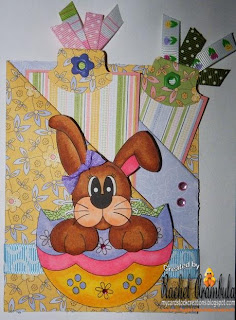 Barnaby Bunny Topper of coarse i have renamed my bunny Barnabella since i can never leave these digi's alone and i made barnaby into a girl bunny by adding a beautiful purple ribbon. I also used the cracked egg from the